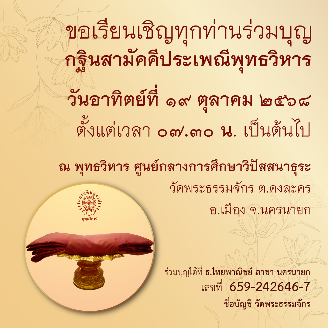 สพฺพปาสฺส อกรณํ กุสลสฺสูปสมฺปทาสจิตฺตปริโยทปนํ เอตํ พุทฺธาน สาสนํการไม่ทำบาปด้วยประการทั้งปวงการยังกุศลทั้งปวงให้ถึงพร้อมการทำจิตตนให้ผ่องใส นี้เป็นคำสอนของพระพุทธเจ้าทั้งหลายจากหนังสือพุทธวิหาร ศูนย์กลางการศึกษาวิปัสสนาธุระหน้า 117 แนะนำศูนย์กลางการศึกษาวิปัสสนาธุระพุทธวิหาร วัดพระธรรมจักร ประชาสัมพันธ์